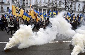 Марш достоинства, в котором приняли участие представители Национального корпуса "Азов", "Правого сектора" и ВО "Свобода".