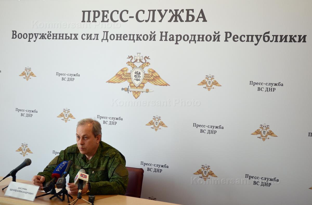 Пресс-конференция заместителя командующего корпусом министерства обороны Донецкой Народной Республики Эдуарда Басурина.