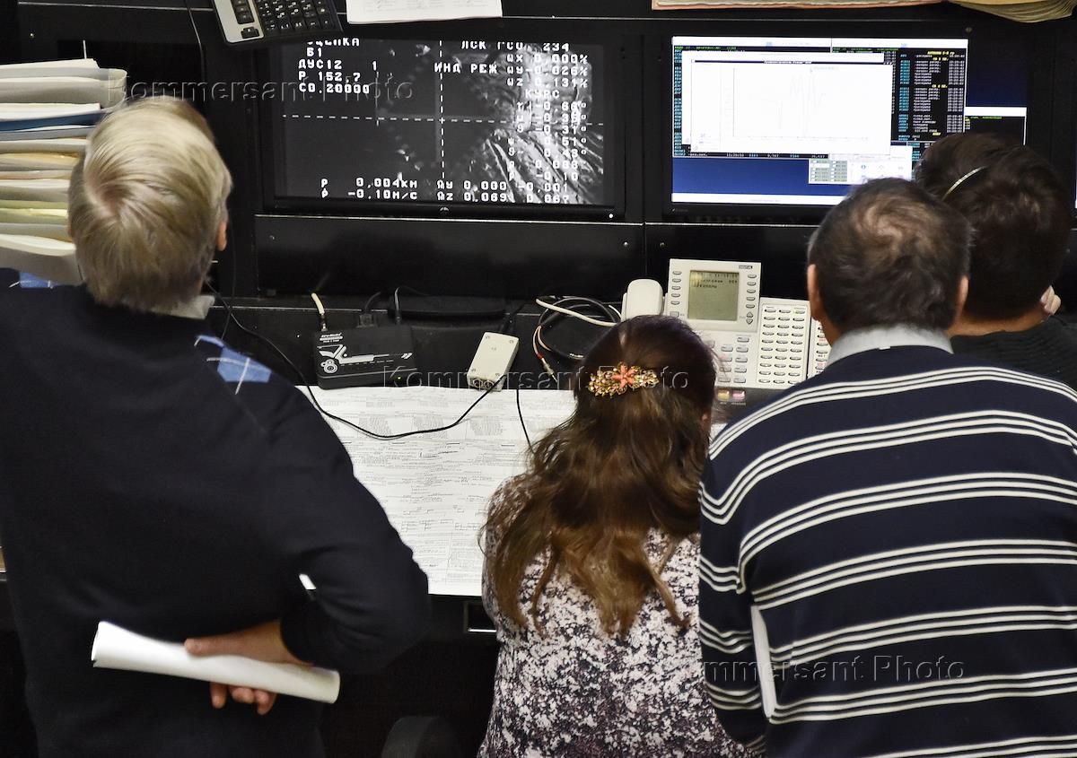 Выведение на орбиту, сближение и стыковка транспортного грузового корабля "Прогресс МС-05" с МКС в Центре управления полетами в Королеве.