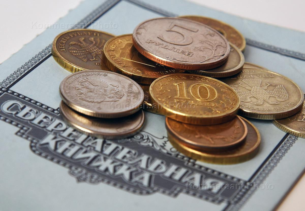Жанровая фотография. Металлические рубли лежат на сберегательной книжке.