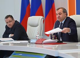Происшествия и конфликты Заседание правительственной комиссии по предупреждению и ликвидации чрезвычайных ситуаций и обеспечению пожарной безопасности под руководством главы МЧС России Владимира Пучкова.