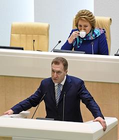 Пленарное заседание Совета Федерации (СФ) России. Представитель в СФ России от правительства…