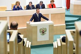 Пленарное заседание Совета Федерации (СФ) России. Представитель в (СФ) России от исполнительного…