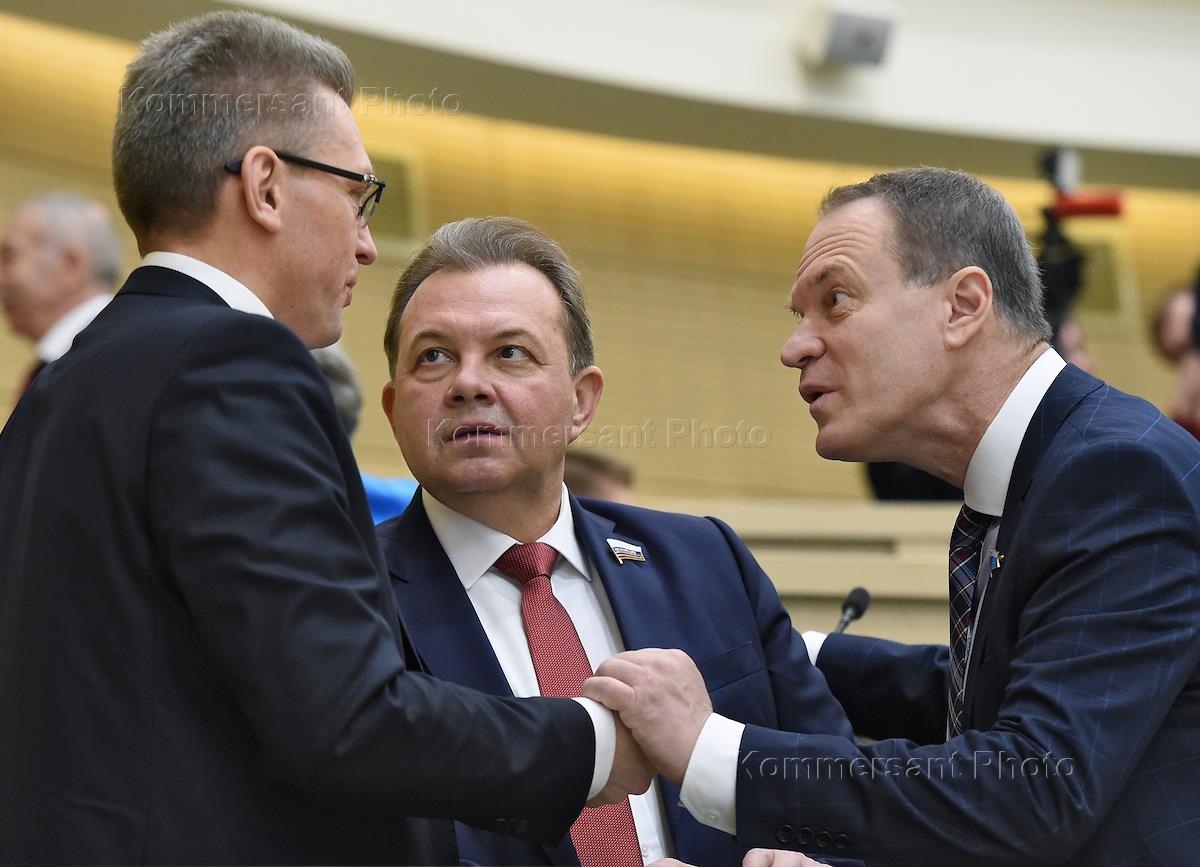 Пленарное заседание Совета Федерации (СФ) России. Слева направо: заместитель председателя Совета…