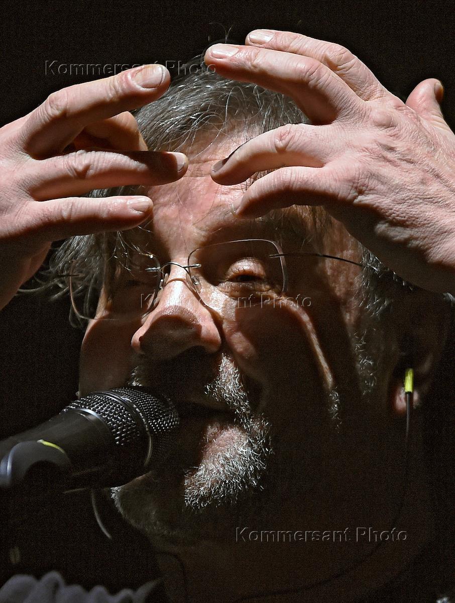 Лидер группы "ДДТ" Юрий Шевчук во время выступления на концерте "История звука" в спортивном…