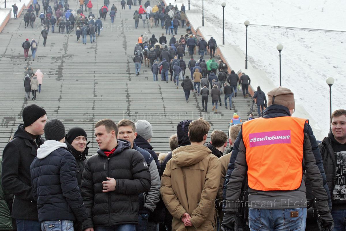 Флешмоб мужского населения Нижнего Новгорода на Чкаловской лестнице.