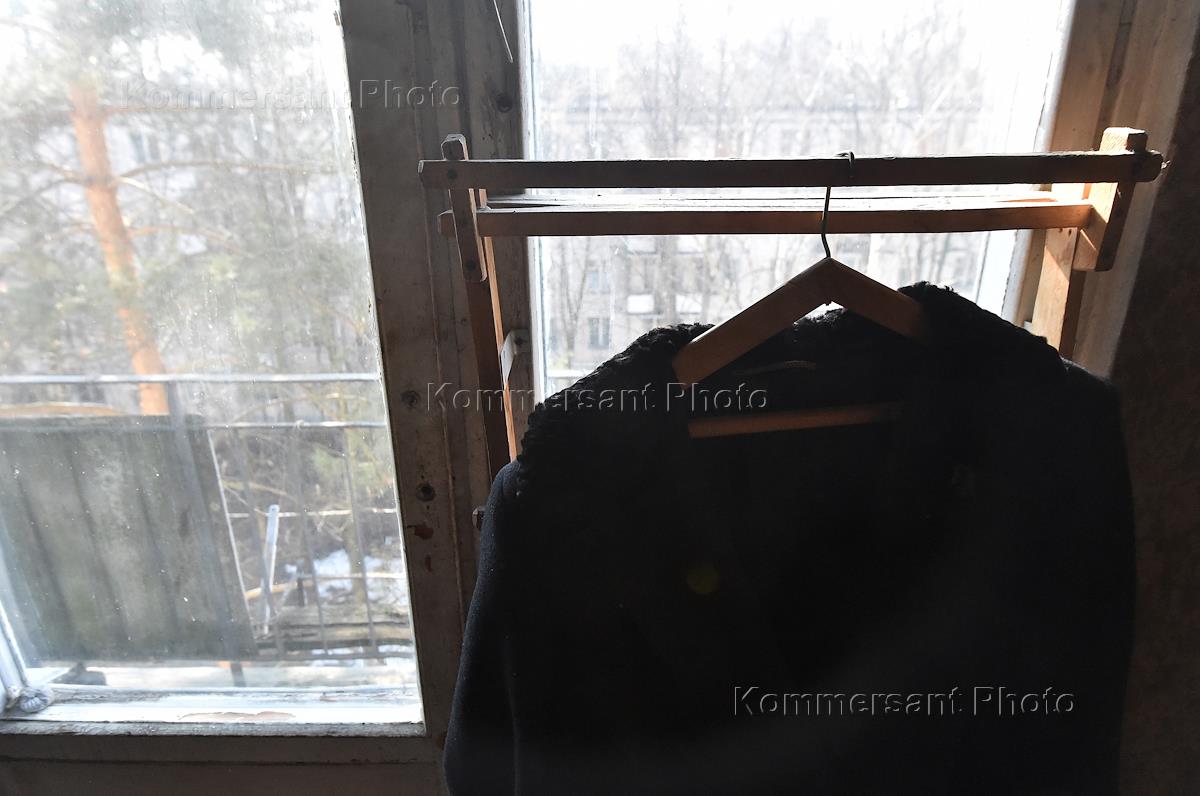 Виды Москвы. Пятиэтажные жилые дома на улице Академика Павлова. Вешалка для пальто у балконного окна…
