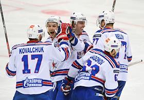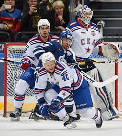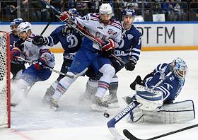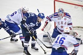 Спорт Континентальная хоккейная лига (КХЛ). Кубок Гагарина. 1/4 финала плей-офф. Матч между командами "Динамо" (Москва) и СКА (Санкт-Петербург) в спортивном комплексе "ВТБ Ледовый Дворец".