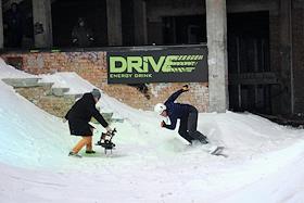 Соревнования Drive Urban Snowboard в недостроенном ДК "Сибсельмаш" на площади Карла Маркса в Новосибирске.