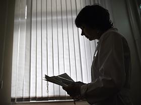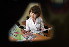 Нейролог Елена Коробейникова во время интервью в здании Московского научного клинического центра.