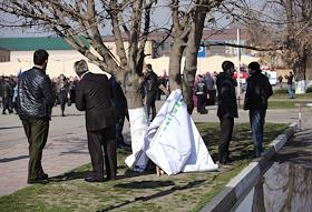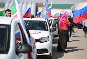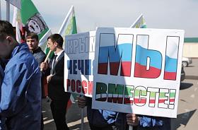 Митинг в честь третьей годовщины присоединения Крыма к России в Грозном.