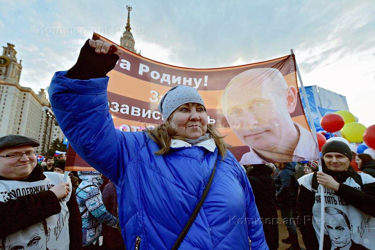 Праздничный митинг-концерт, посвященный годовщине воссоединения Крыма с Россией на Университетской площади перед Главным зданием МГУ.