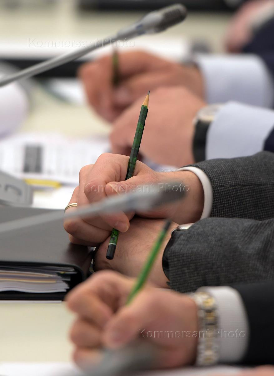 Заседание президиума Совета по стратегическому развитию и приоритетным проектам в Кремле. Слева…