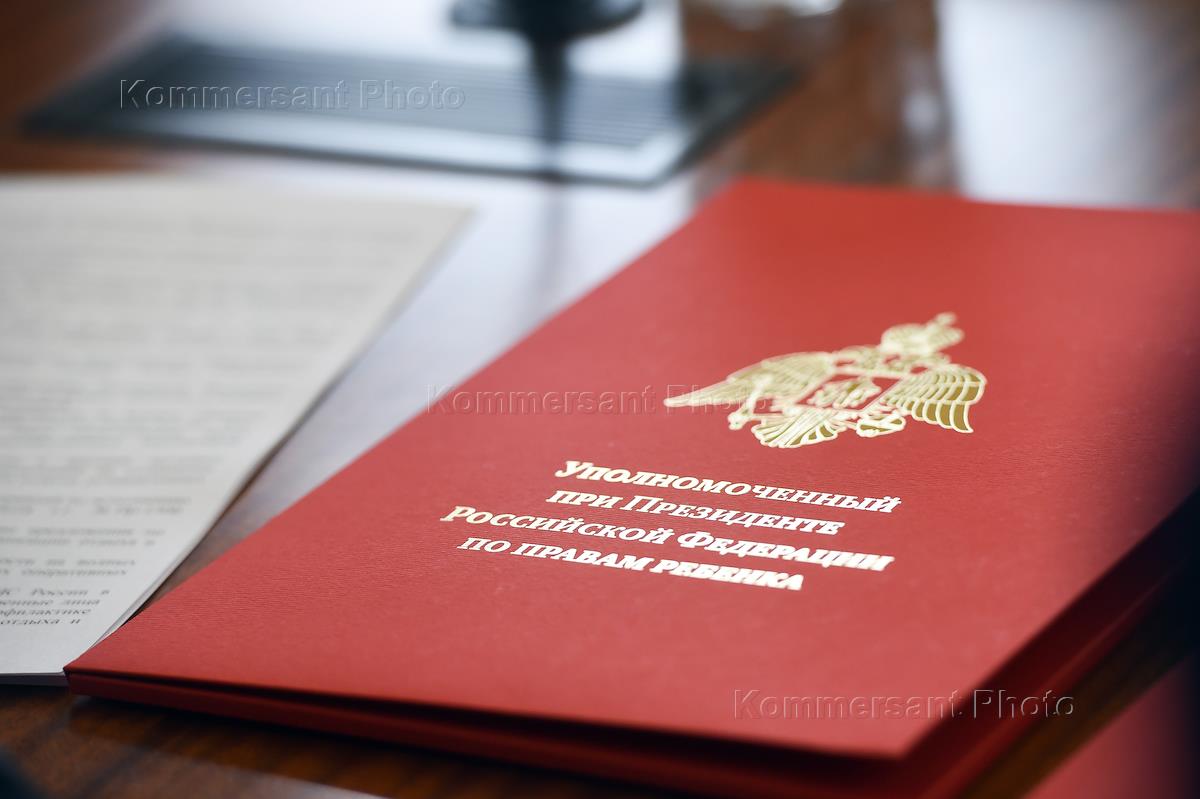 Жанровая фотография. Папка с надписью Уполномоченный при президенте России по правам ребенка.