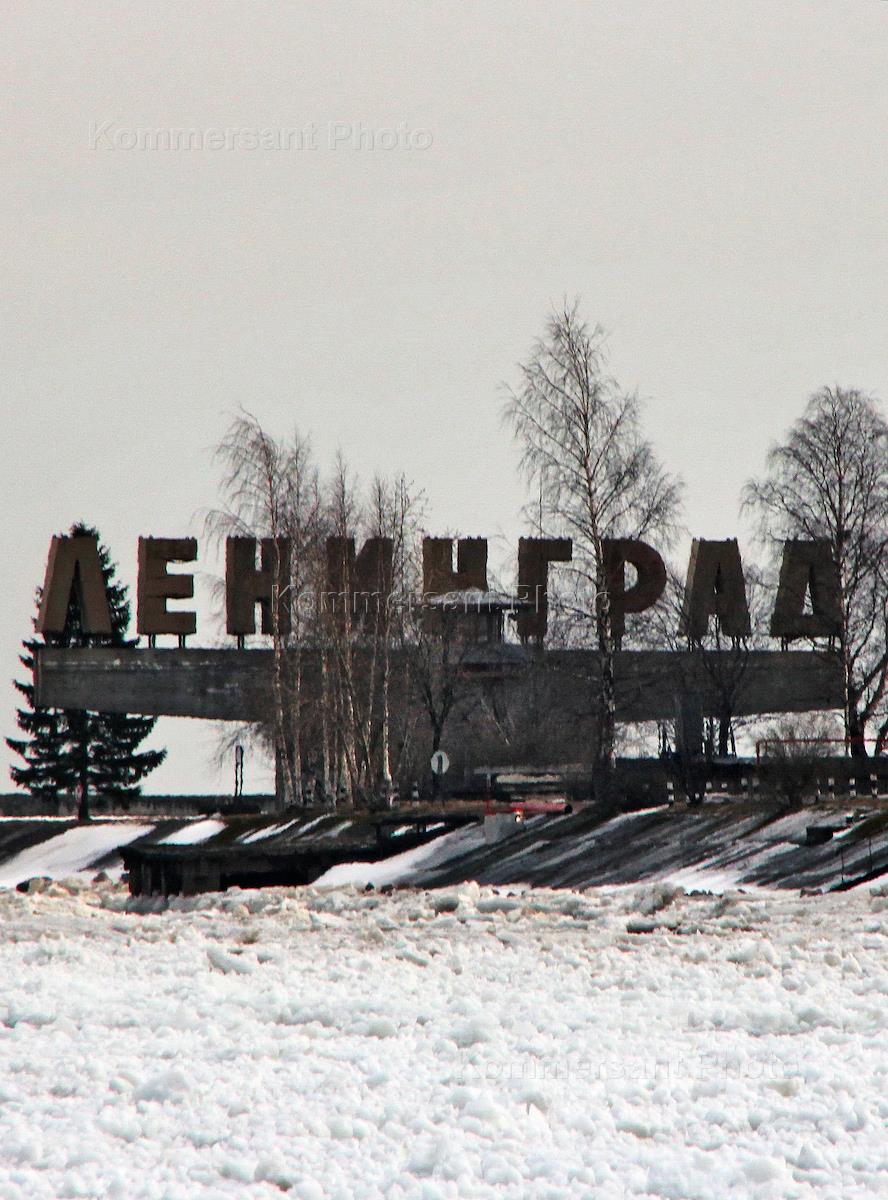 Виды Санкт-Петербурга. Большой порт зимой. Стелла "Ленинград" у входа в акваторию порта.