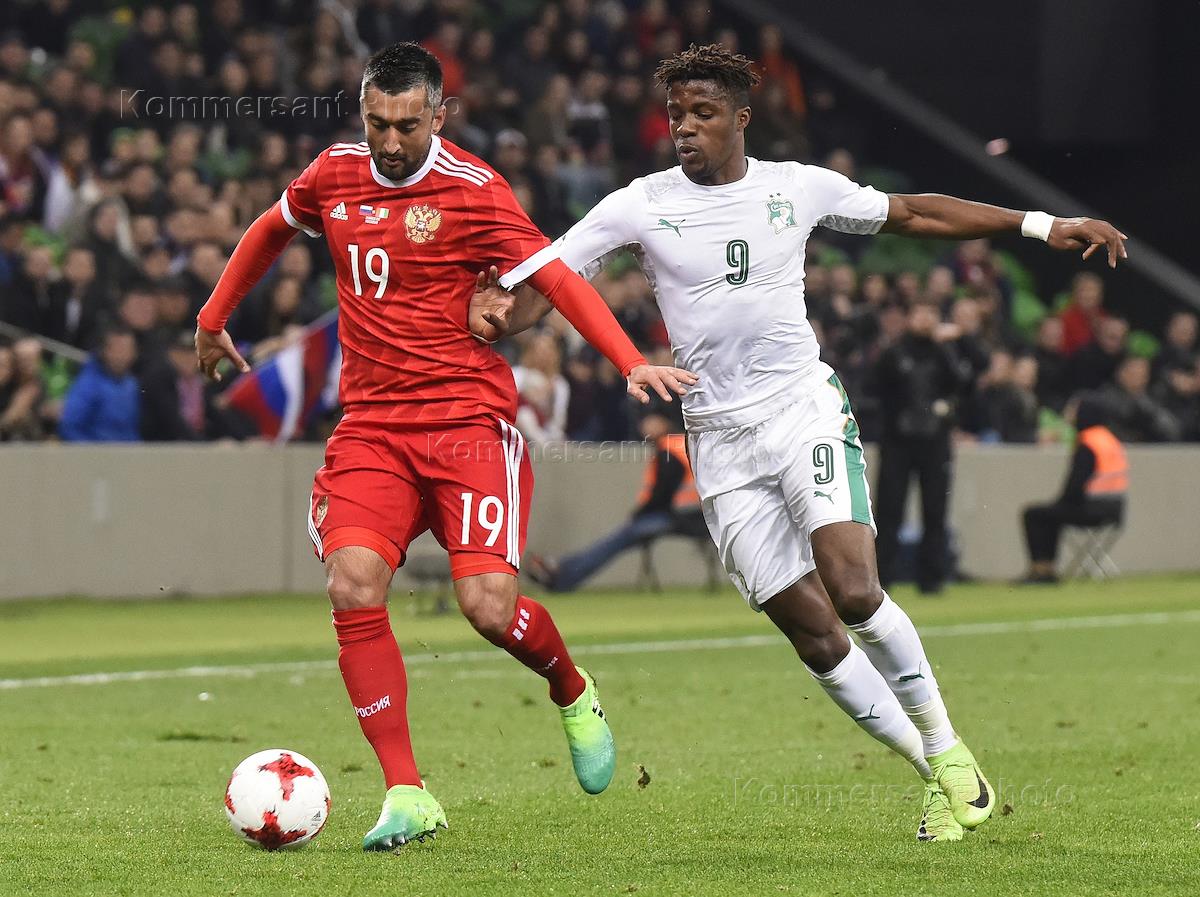 Товарищеский матч национальных сборных России и Кот-д'Ивуара на стадионе "Краснодар". Игрок сборной…