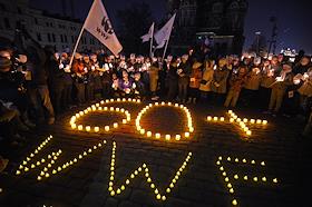 Ежегодная экологическая акция Всемирного фонда дикой природы (WWF) "Час Земли" в Москве.