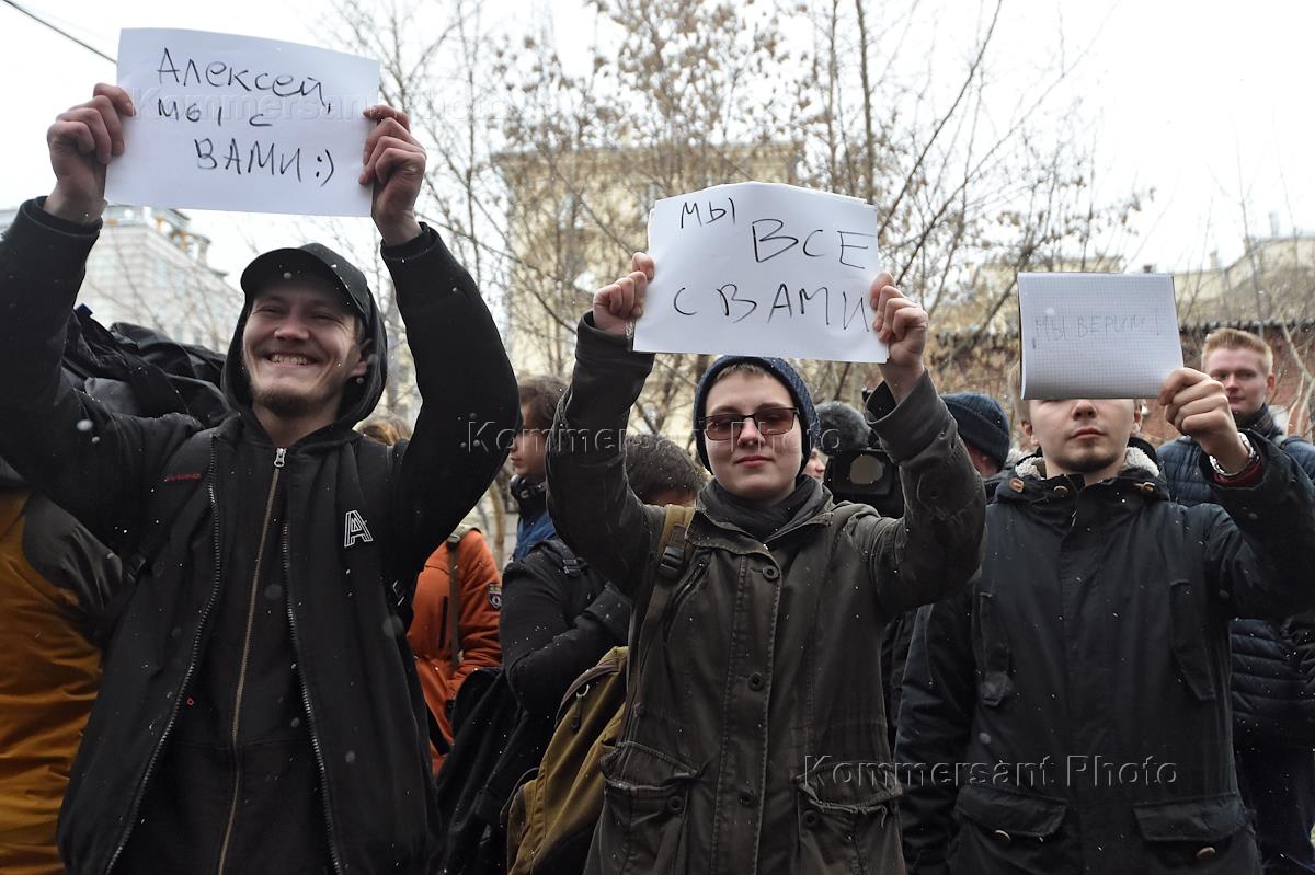 Участники пикета у здания Тверского районного суда, где рассматривали административное дело…