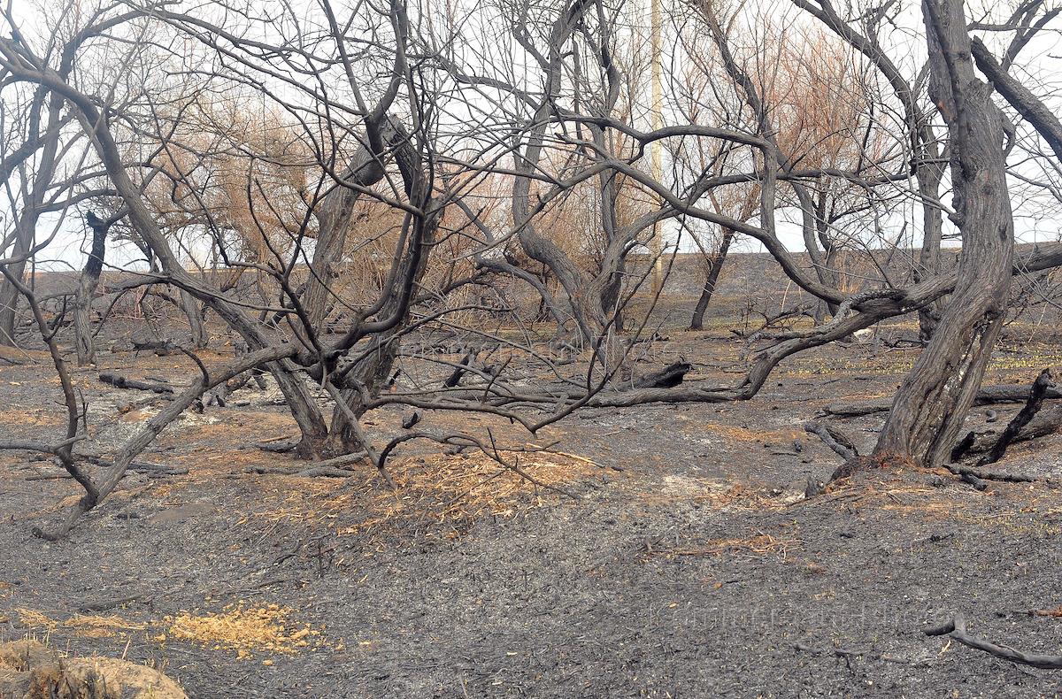 Противопожарный патруль Гринпис в Астраханской области. Выгоревшие деревья.