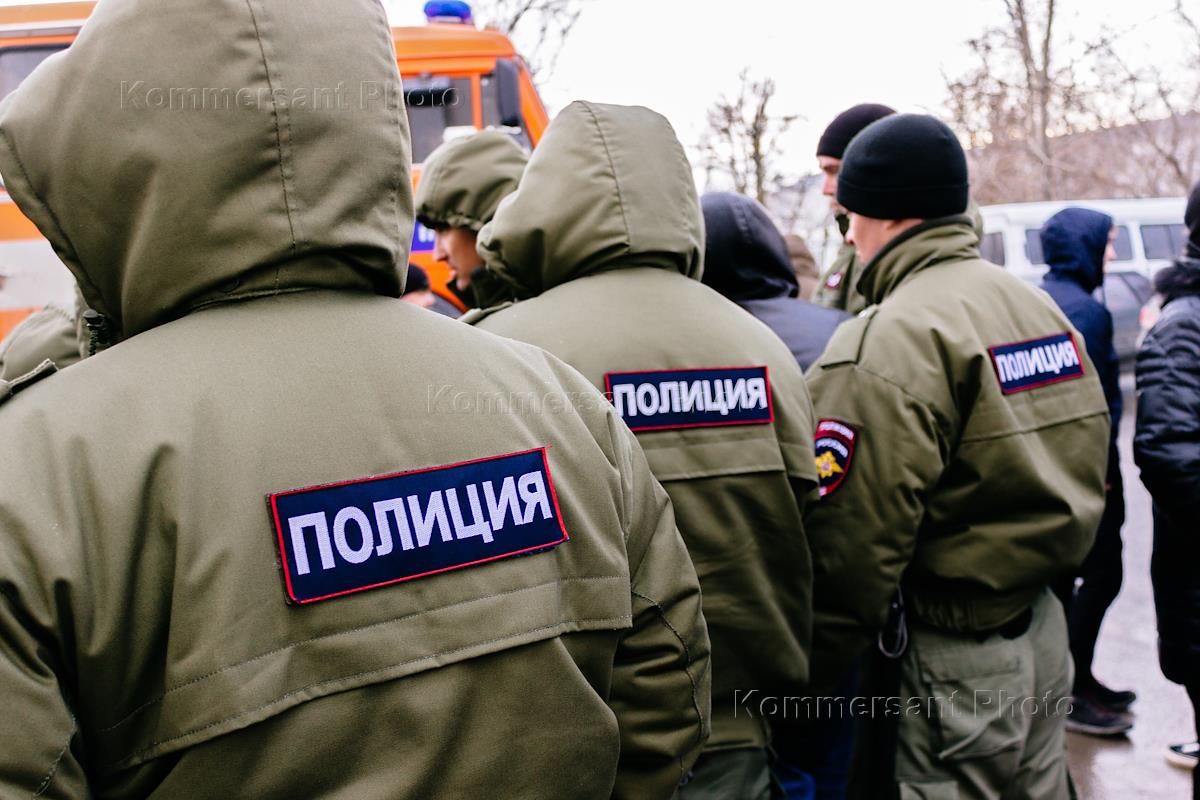 Сотрудники правоохранительных органов во время проведения несанкционированного митинга сторонников…