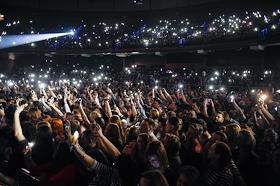 Концерт группы "Мумий Тролль" на сцене концертного зала Crocus City Hall. Зрители в зале.