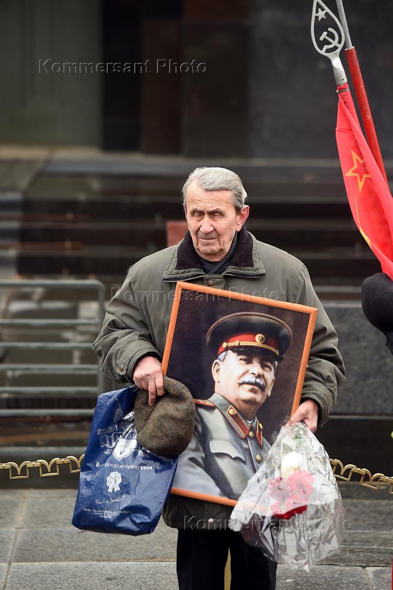 Несанкционированная акция протеста против коррупции на Красной площади. Участник с портретом Сталина…