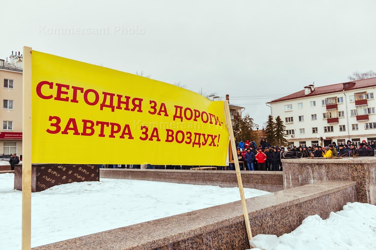 Митинг дальнобойщиков против системы "ПЛАТОН" прошел в микрорайоне Дербышки напротив Дома культуры…
