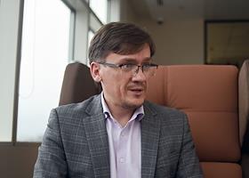 Директор Первой Московской гимназии Дмитрий Лихачев во время интервью.