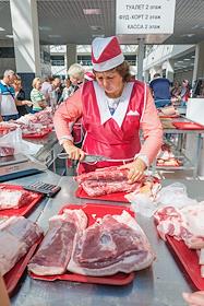 Жанровая съемка. Центральный рынок Воронежа. Торговля мясом и мясными изделиями.
