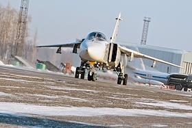 Жанровая фотография. Фронтовой бомбардировщик СУ-24М (бортовой номер 33, RF-92017 выруливает на…