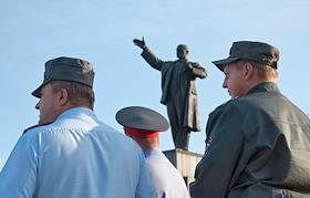Жанровая фотография. Сотрудники милиции у памятника вождю революции Владимиру Ленину.