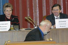 Заместитель Председателя Правительства России по социальным вопросам Валентина Матвиенко (слева),…