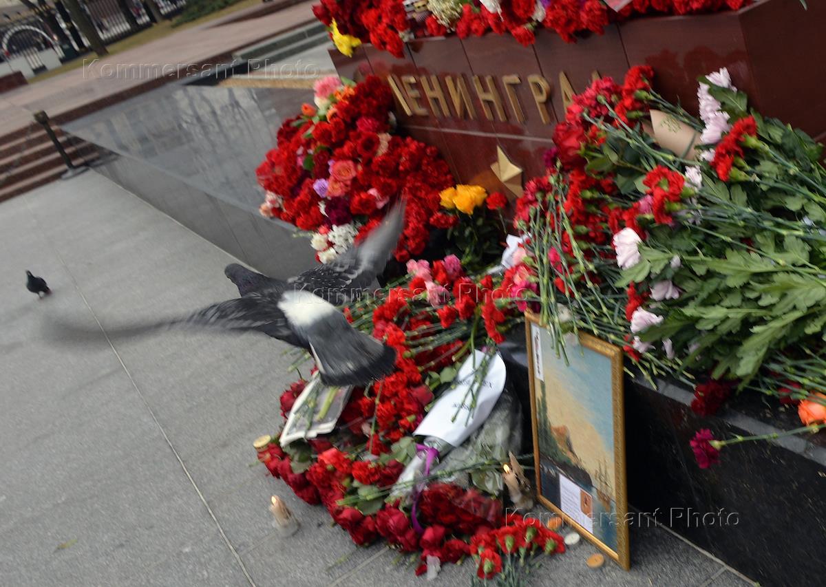 Цветы, принесенные москвичами, у мемориала города-героя Ленинграда в Александровском саду в память о…