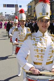 Колонна музыкантов во время праздничного шествия по Невскому проспекту в День рождения города.