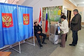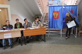 Жители Новосибирска участвует в народном голосовании на избирательном участке в Новосибирске.