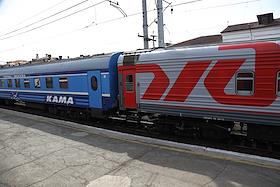 Пассажирский поезд на станции Пермь-2. Вагон поезда "Кама". Вход в вагон с пандусом для инвалидных…