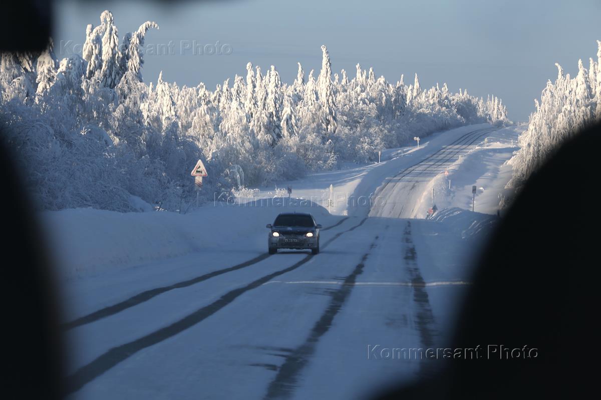 Виды Прикамья. Заснеженный лес и автодорога в районе города Губаха.