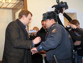 Обвиняемый в убийстве кардиохирурга Павел Бровкин (слева) во время суда об избрании ему меры…