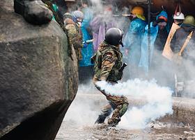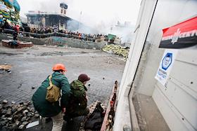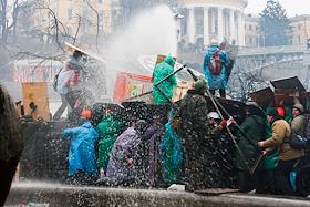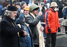 Евромайдан после ночи противостояния. Уличные бои не утихают. Священнослужители на передовой.