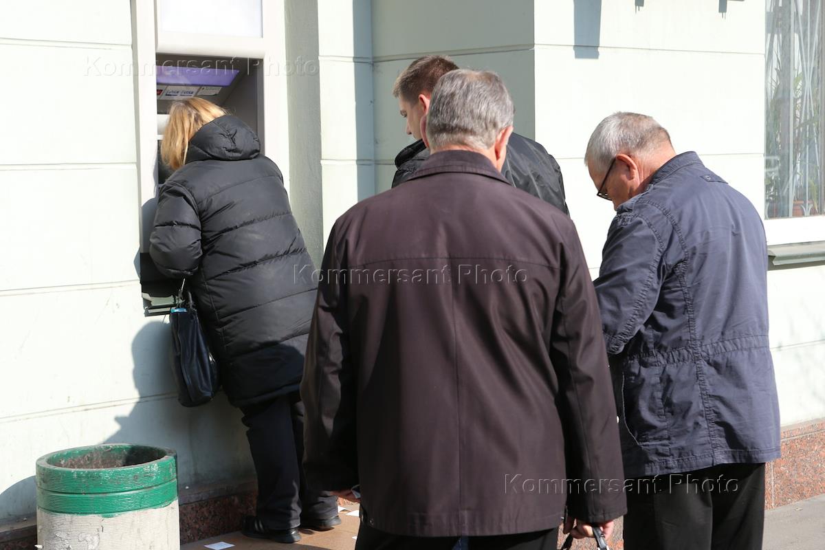Городская съемка. Очередь в банкомат.