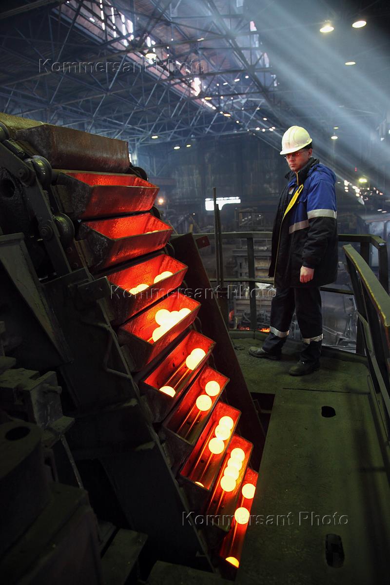 Гурьевский металлургический завод. Рабочий в цехе горячего литья.