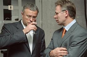 Председатель правления АКБ "Национальный резервный банк" (НРБ) Александр Лебедев (слева) и…