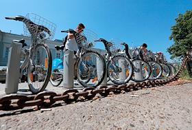 Виды Казани. Первый велопаркинг на улице Кремлевской в Казани.