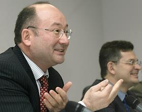 Президент банка "Уралсиб" Азат Курманаев (слева) и президент инвестиционной-банковской группы…