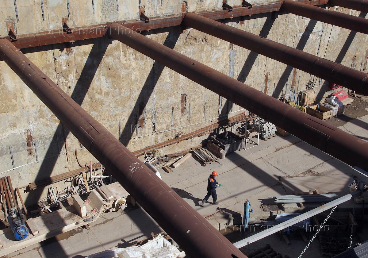Строительство станции метро "Мещерское озеро".