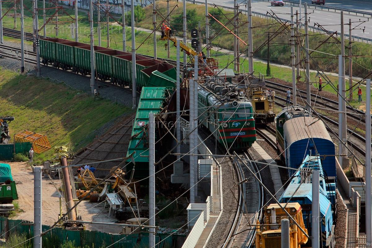 Последствия столкновения грузовых поездов на станции "Выдубичи".