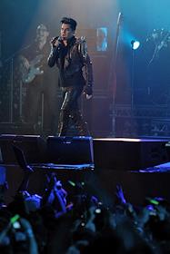 Американский певец Адам Ламберт во время выступления с группой Queen на благотворительном концерте.…