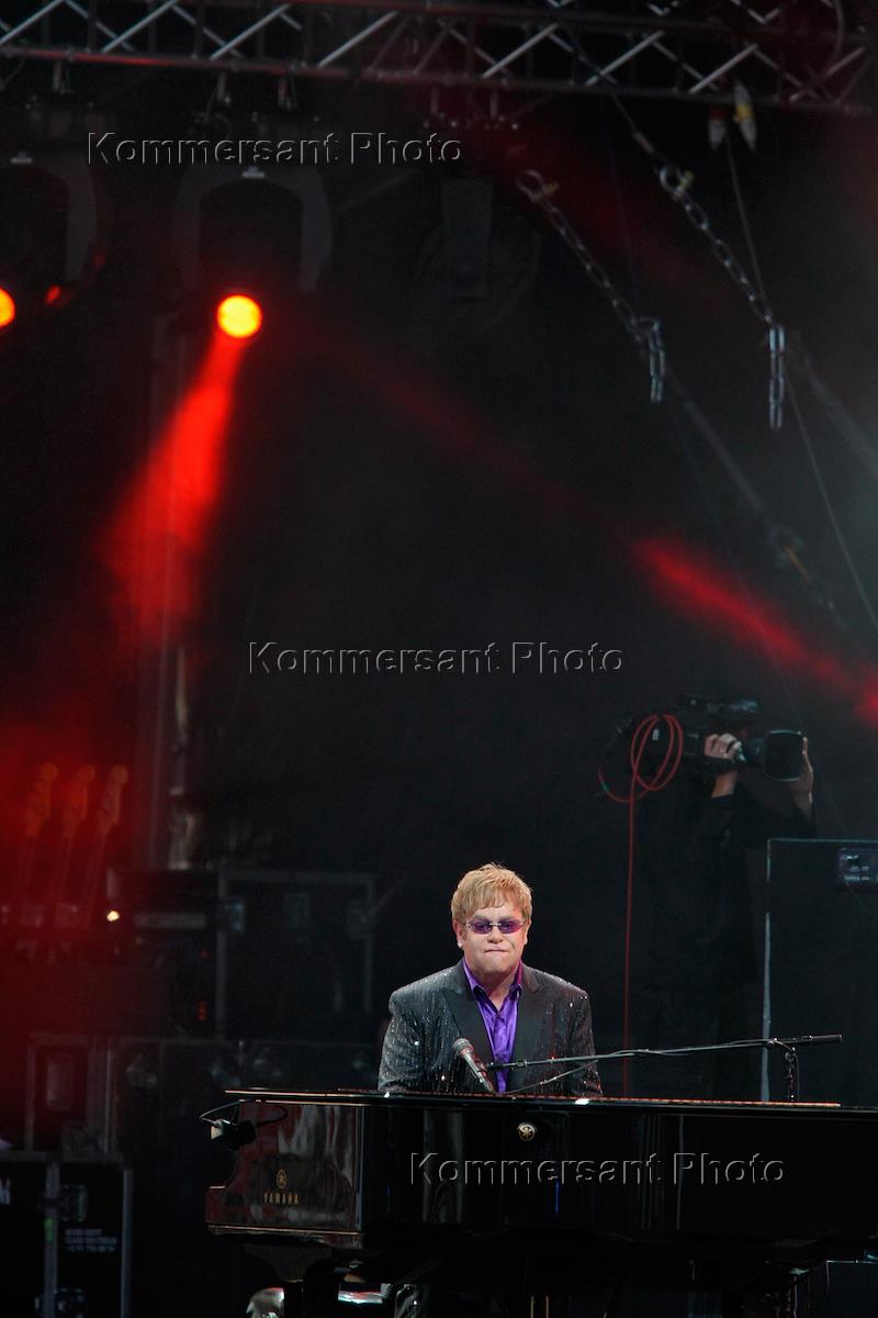 Британский композитор и певец Элтон Джон во время выступления на благотворительном концерте.…