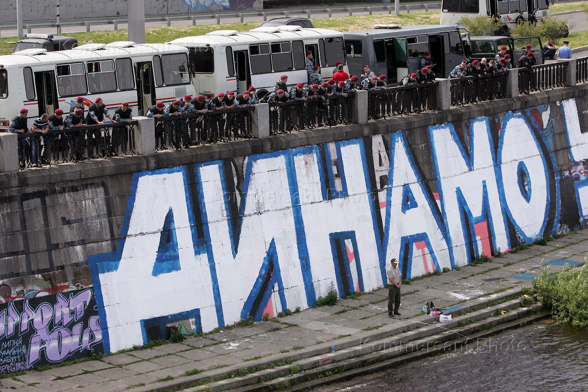 Подразделения милиции специального назначения "Беркут" в ожидании гей-парада.
