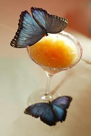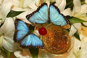 Живые бабочки на вазочке с десертом в подарок женщинам к 8 Марта в ресторане "Улей".